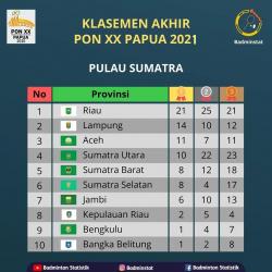 Jumat, - 17:00:00 WIB Suarasindo.com | PEKANBARU - Gubernur Riau Syamsuar mengapresiasi prestasi yang dicapai kontingen Riau di PON XX Papua tahun 2021. Apresiasi itu disampaikan Gubri karena kontingen Riau berhasil memenuhi target peringkat 1 antar Pulau Sumatera setelah meraih 67 medali terdiri atas 21 emas, 25 perak, dan 21 perunggu sehingga masuk posisi delapan besar.Berikut klasemen akhir PON XX PAPIA 2021 : Riau : 21 Medali Emas, 25 Medali Perak, 21 Medali PerungguLampung : 14 Medali Emas, 10 Medali...